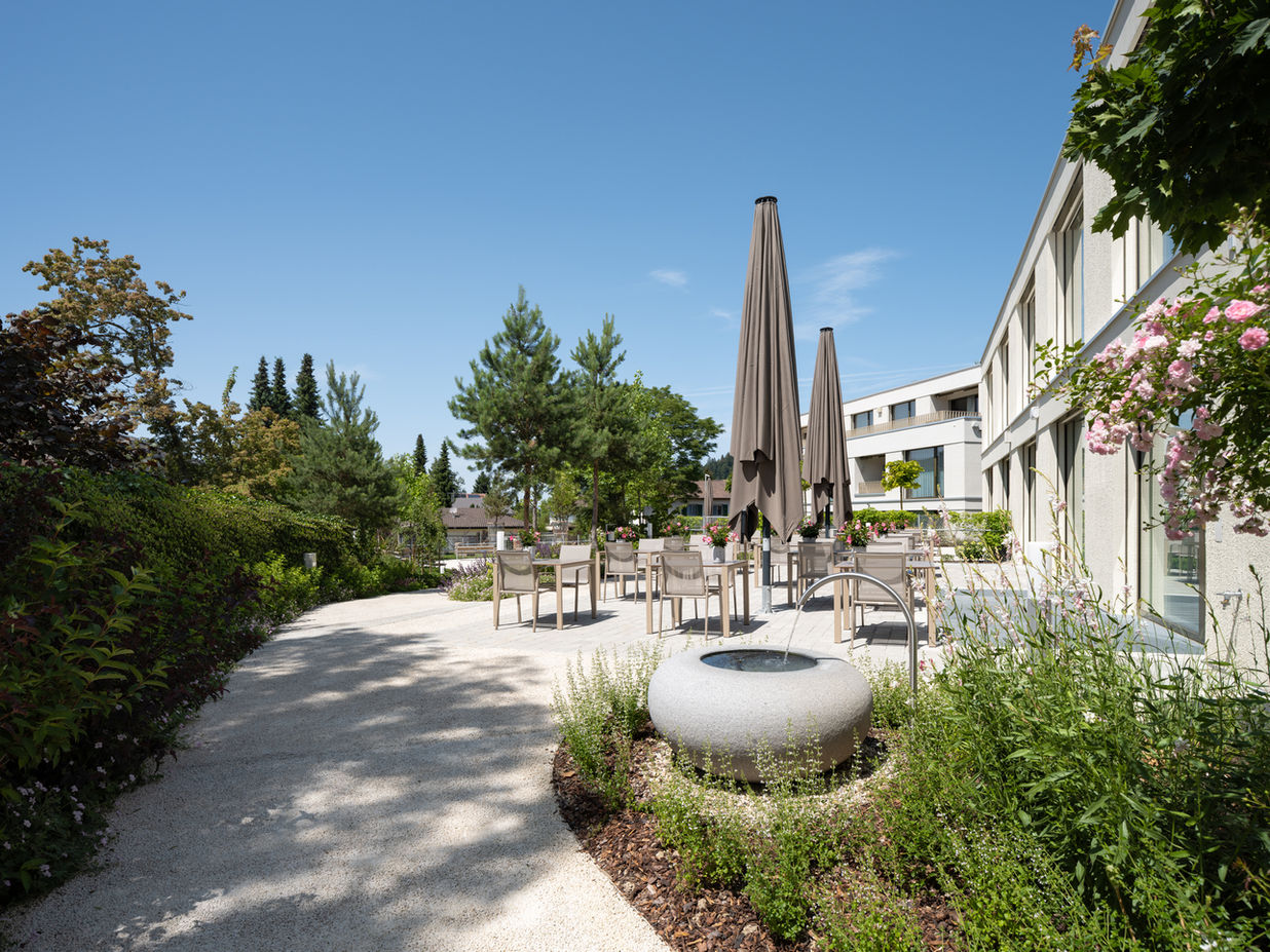 Die helle und grosszügig ausgestattete Cafeteria und die sonnigen Aussenplätze sind Orte wertvoller Begegnungen. Sie laden zum genussvollen Verweilen sowie zu erholsamen Stunden ein.
